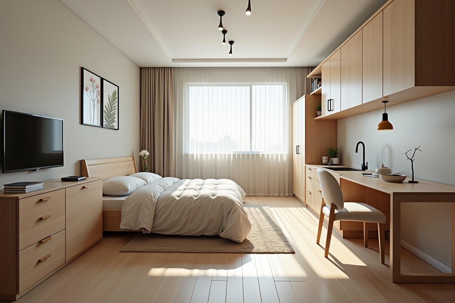 Raumteiler wie Regale, Paravents oder Vorhänge können helfen, verschiedene Bereiche wie Schlafbereich, Wohnbereich oder Arbeitsbereich zu definieren.