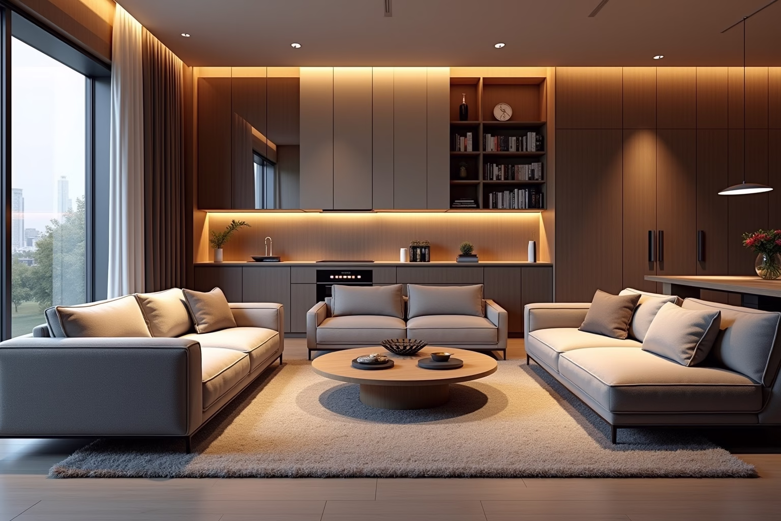 Denke darüber nach, welche Aktivitäten in deinem Wohnzimmer stattfinden sollen und wie du die verschiedenen Bereiche am besten miteinander kombinierst. Achte darauf, dass die Übergänge fließend sind und die einzelnen Zonen harmonisch ineinander übergehen. Ein großer Teppich kann beispielsweise dazu beitragen, die Sitzecke optisch zusammenzuhalten und einen Rahmen für die Möbel zu bilden. Regale oder Raumteiler können verwendet werden, um den Lese- oder Arbeitsbereich vom restlichen Wohnzimmer abzugrenzen und so eine ruhige und konzentrierte Atmosphäre zu schaffen.